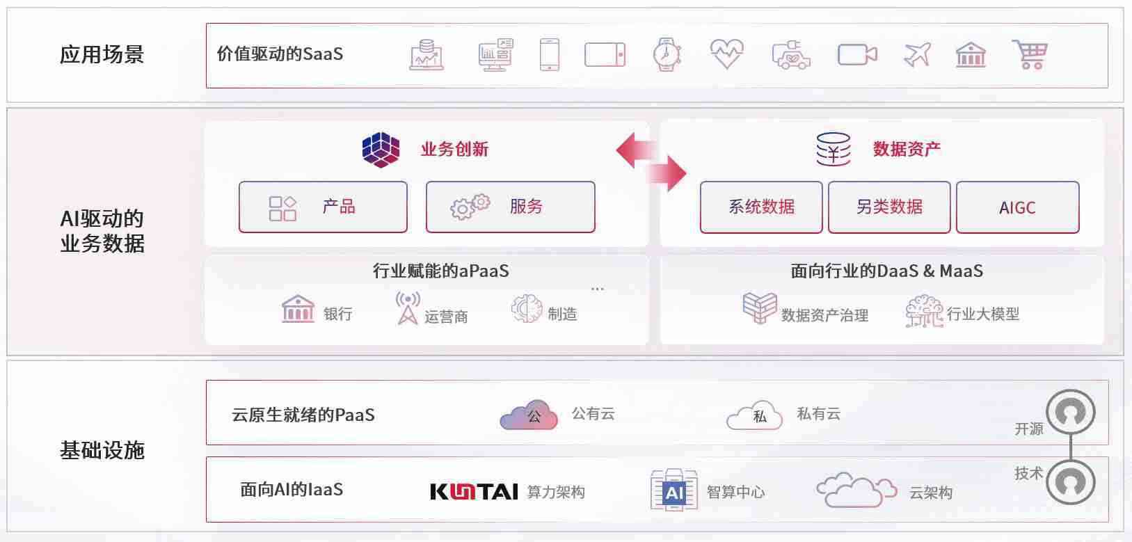 数字时代,,,围绕企业数字化转型的关键要素,,ABPAY爱博钱包数码开创性的提出数云融合战略和技术体系框架,,,,着力在云原生、、数字原生、、AI原生和信创产业上架构产品和服务能力,,,,为处在不同数字化转型阶段的快消零售、、汽车、、金融、、、、医疗、、、政企、、教育、、运营商等行业客户提供泛在的敏捷IT能力和融合的数据驱动能力,,,构建跨界融合创新的数字业务场景和新业务模式,,助力企业级客户建立面向未来的核心能力和竞争优势,,,,全面推动社会的数字化、、、智能化转型升级。。。