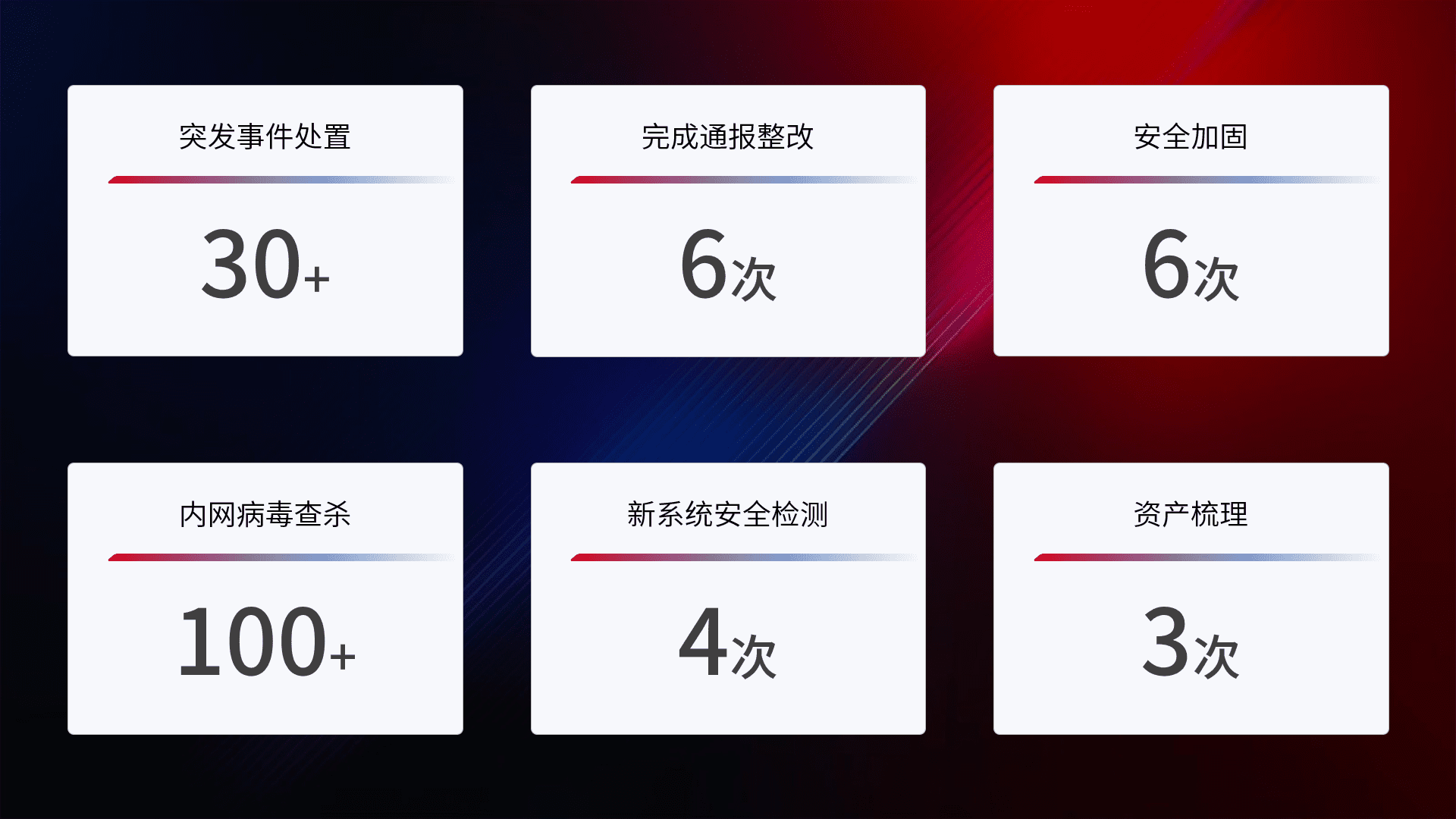 网络安全加固与风险管理:通过技术加固手段,,如加强区域隔离,,缩减攻击内网横向移动的范围;优化现有网络安全管理制度,,,,降低网络威胁暴露面,,,,减少被黑客攻击的可能性。。。